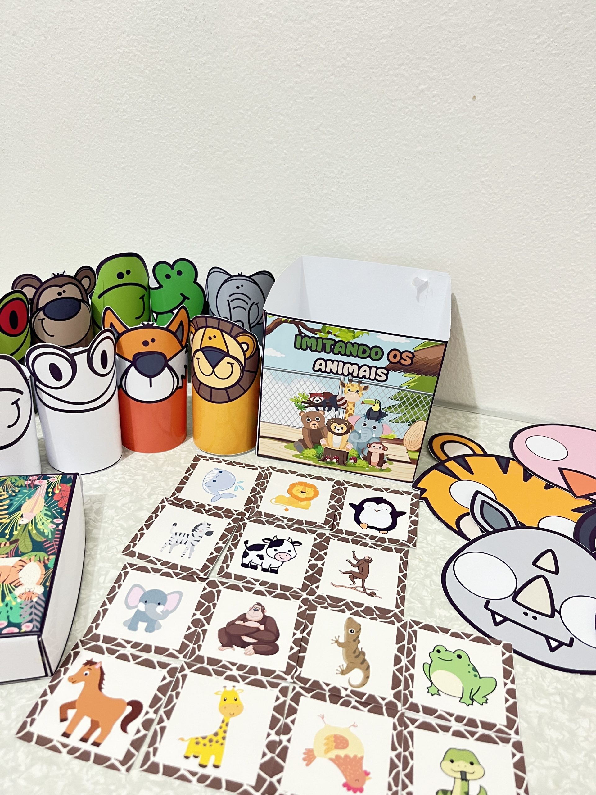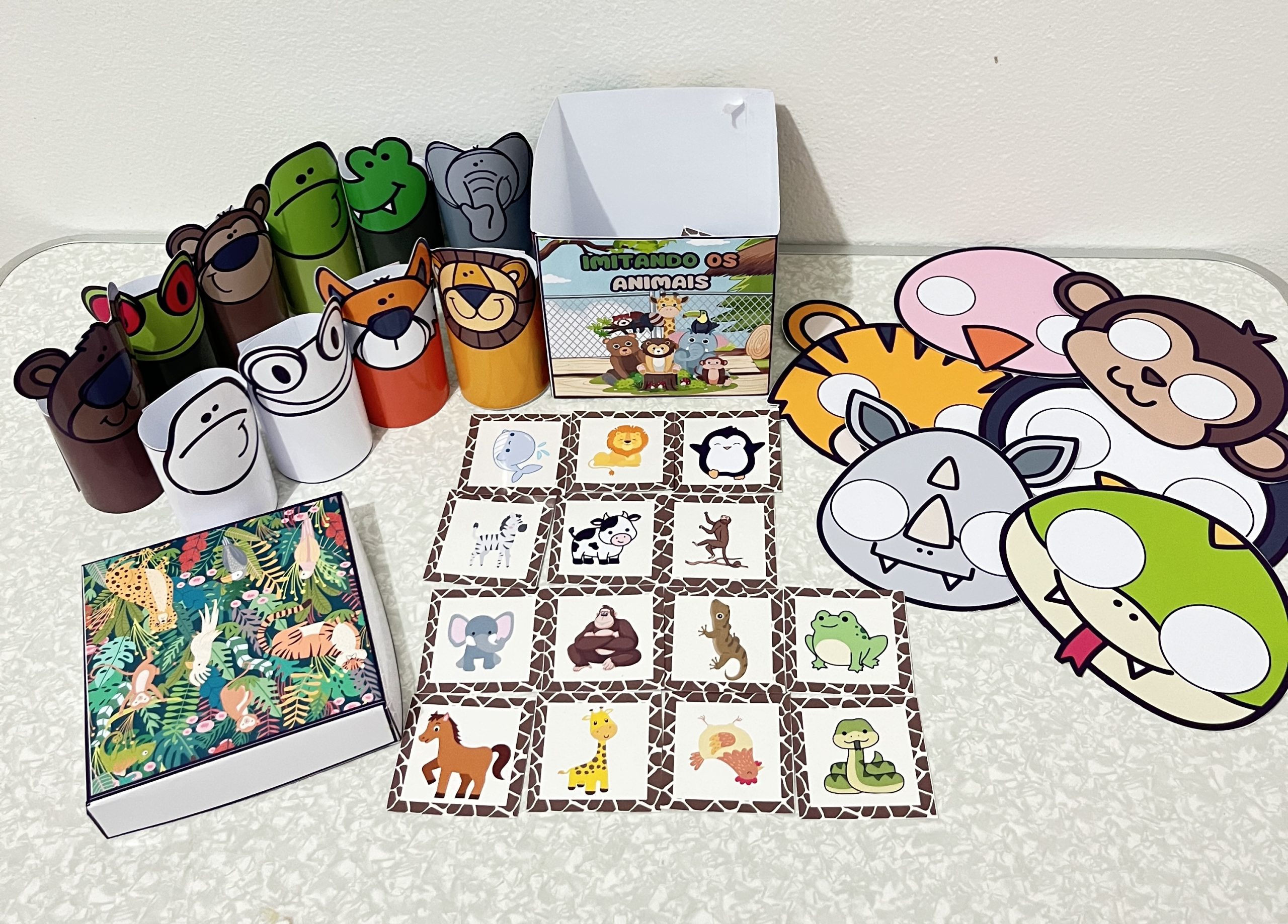 A atividade “Caixa Imitando os Animais” promove o reconhecimento de animais por meio de imagens e formas lúdicas. Os alunos desenvolvem habilidades motoras e cognitivas ao recortar e associar os animais às suas representações.