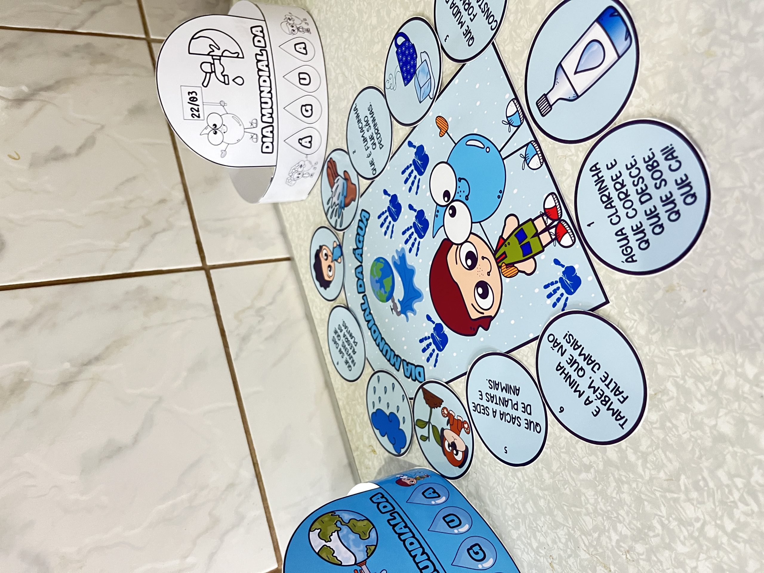 Os alunos exploram conceitos sobre a água e sua importância por meio de atividades de pintura e recorte. Desenvolvem habilidades motoras e de colaboração.